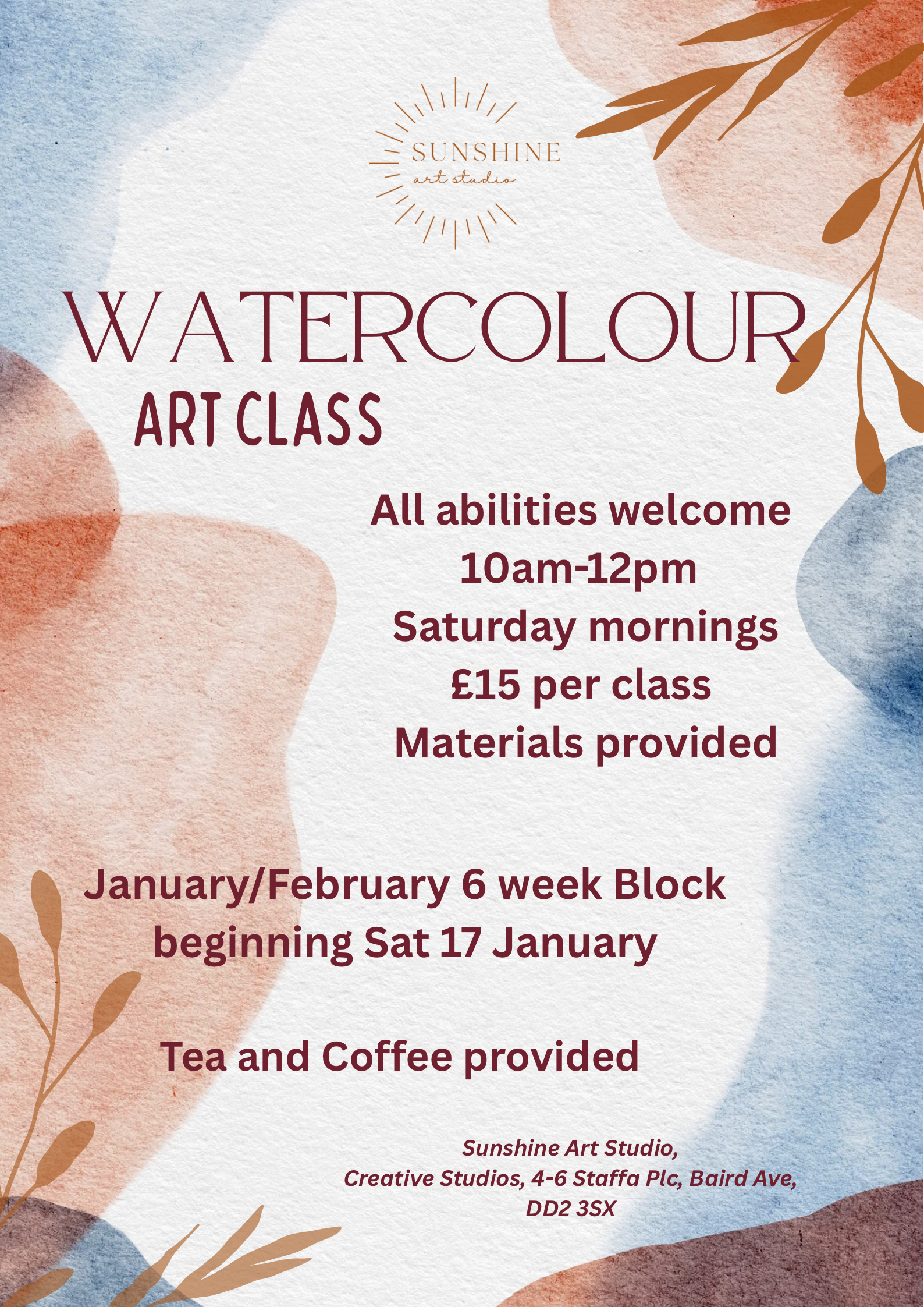 - Location: Sunshine Art Studio, 4-6 Staffa plc, Baird Avenue, DD2 3SX - studio located at the dead end of Baird avenue, free parking onsite